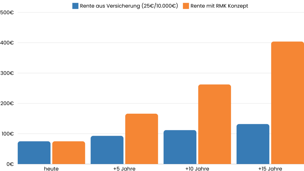 Durch die RMK Methode erhöhen Sie völlig unkompliziert Ihr Kapital zum Rentenbeginn. Smart, Sicher und Sinnvoll. Im Grunde holen Sie Ihr Geld aus unrentablen Anlagen, in lukrative Vermögenswerte.